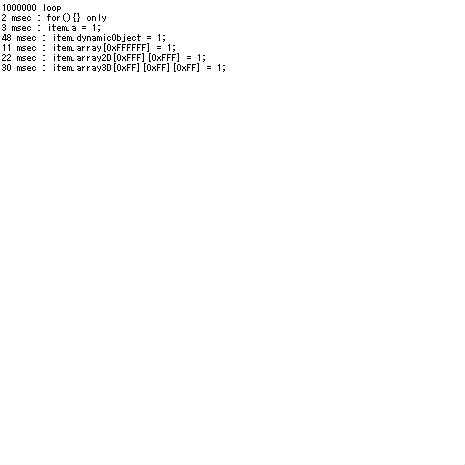 }note.end( " msec : item.array3D[0xFF][0xFF][0xFF] = 1; \n");