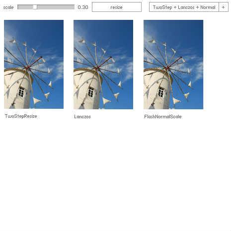 var returnBmpData:BitmapData = TwoStepResizer.resize(souceBitmapData, Math.round(loader.width*targetScale), Math.round(loader.height*targetScale));