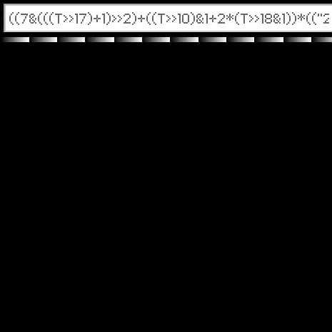 '((7&(((t>>17)+1)>>2)+((t>>10)&1+2*(t>>18&1))*(("23468643"[7&t>>12]-48)+(3&t>>11))+((3&t>>17)>0)*(3&t>>9)*!(1&t>>10)*(((2+t>>10&3)^(2+t>>11&3))))*t*"@06+"[3&t>>15]/32)'