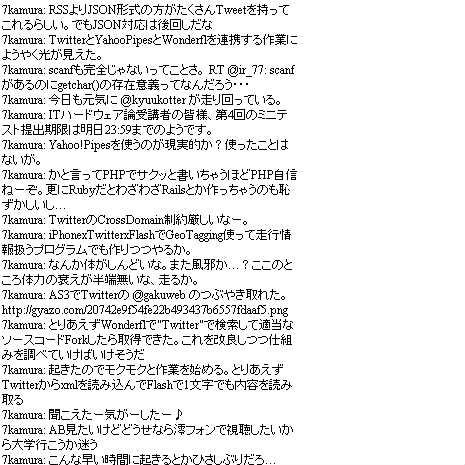 myTextField.htmlText = "<a href='http://twitter.com/"+json.value.items[0].status[i].user.screen_name+"/status/"+String(json.value.items[0].status[i].id)+"'><img src='"+imgURL.replace(/_normal./,"_mini.")+"' width='50' height='50' /><b>" + json.value.items[0].status[i].user.name + "</b> " + json.value.items[0].status[i].text + "</a>\n";