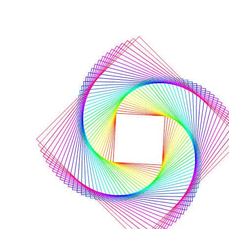 forked from: 正方形の大きさ,色,回転を連続して変4