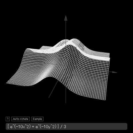 form.x = 20; form.y = 430; form.text = "{ e^(-10x^2) + e^(-10y^2) } / 3"; forms.addChild(form);