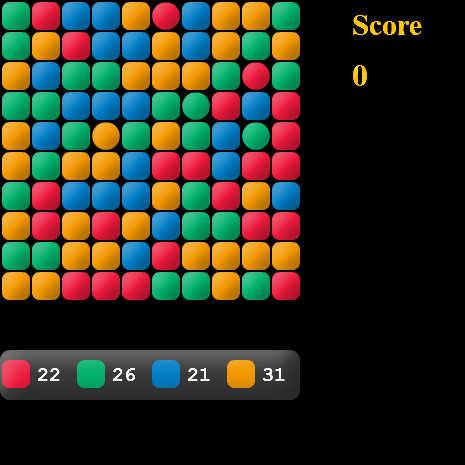 終了判定のコードを書いた。 * 判定基準 - もうどこのブロックも消せない場合 * * 問題点: * 立ち上げたときに"+ 0"が出るのを何とかする * ステージの導入 * 目標スコアの設定 * デザインの調整