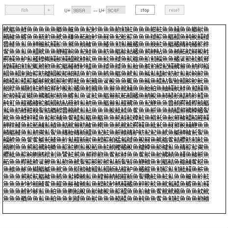 "ライフゲームで更新されるビットパターンを\nUnicodeのコードポイントとして文字列に変換するプログラム。\n\n" +