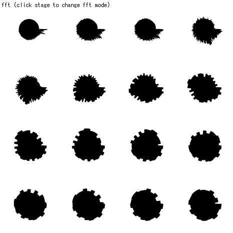 * インタラクションはステージ上クリックによるFFTModeの切り替えと、