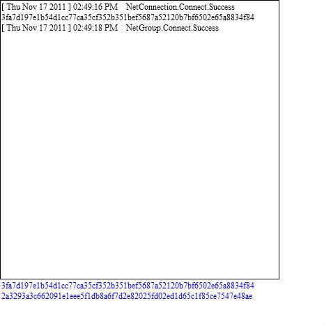 nc.connect("rtmfp://p2p.rtmfp.net/3ea2ccfc17227d122a776d41-31e9e4d71a17/");