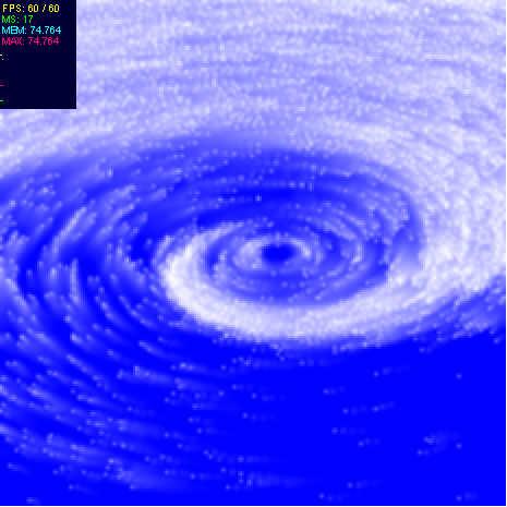 渦、台風っぽく 高速化しないと重いな ブラーもかけたいかも じっと見てると目をまわします