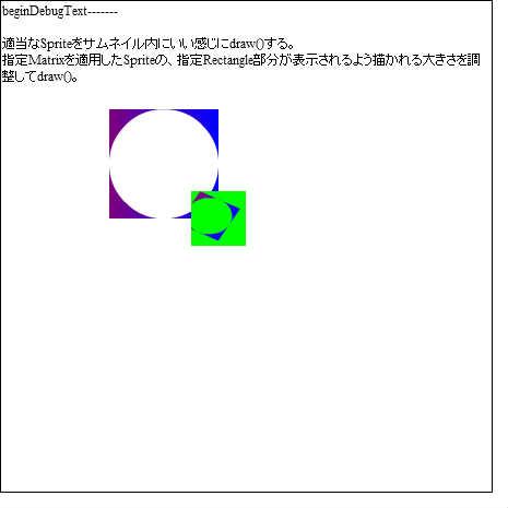 addDebLine("適当なSpriteをサムネイル内にいい感じにdraw()する。");