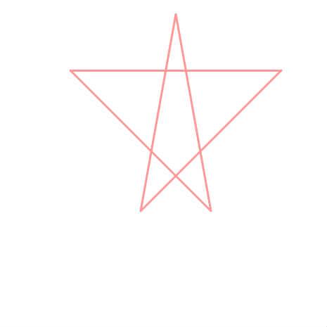 五芒星の形がおかしいのは座標が適当なだけ。これから、「二点間の距離を均等に割った値」を毎フレーム足している。最初からそうしようよ・・・