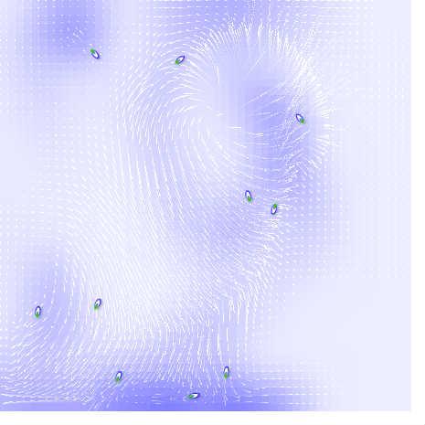 流体のプラクティスです。 ボートの推進力、風、マウスによって流体マップの速度と密度が操作されます。 アルゴリズムは以下の論文のものをそのまま使いました。 http://www.dgp.toronto.edu/people/stam/reality/Research/pdf/GDC03.pdf @author imajuk