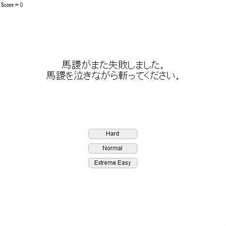 message.text = "\n何故、"+bushou+" を斬ったのですか\n危うく計略が失敗するところでした\n\nちなみに "+killedNum+" 人の馬謖を斬り、\nついうっかり "+killedNumRyuzen+" 人の劉禅を斬りました。";