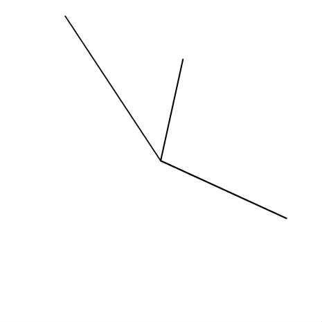 with(graphics)for(clear(),lineStyle(i=2);i<5;x=y=232)moveTo(m=Math,lineTo(m.sin(t=Date().split(/\W/)[++i]/(i%3?10:2))*i*50,-m.cos(t)*i*50))