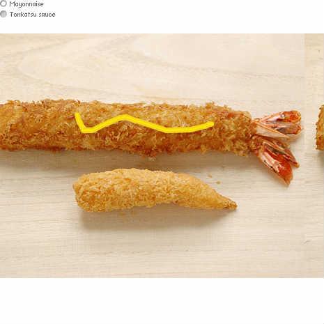 * 流れてくるエビフライにただひたすらソースとマヨネーズをかける