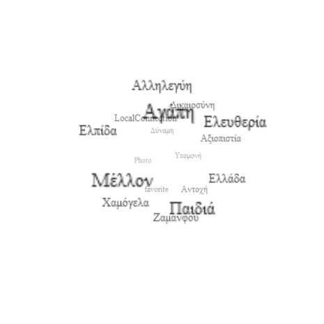 tags = ["Ελευθερία","Αγάπη","Αλληλεγύη","Δικαιοσύνη","Αξιοπιστία","Ελλάδα","Παιδιά","Μέλλον","Ελπίδα","LocalConnection","Δύναμη","Υπομονή","Αντοχή", "Ζαμανφού", "Χαμόγελα"];