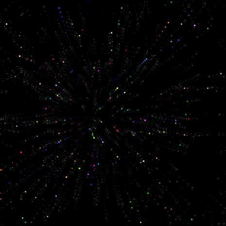 Drag to generate random colored particles.
