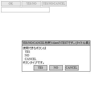 clsAlert.show(root, "使用できるボタンは\n YES\n NO\n CANCEL\nボタンタイプです。",
