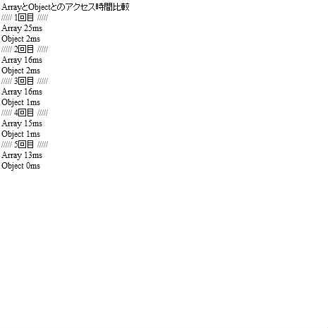 var s:String = "ArrayとObjectとのアクセス時間比較\n";