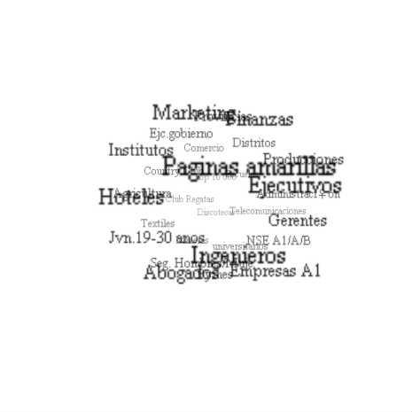 tags = ["Abogados","Ingenieros","Empresas A1","Pymes","Seg. Hombres/Mujeres","Jvn.19-30 anos","Hoteles","Paginas amarillas","Ejecutivos","Gerentes","NSE A1/A/B","universitarios", "Mineras", "Textiles", "Agricultura", "Institutos", "Marketing","Finanzas","Producciones","Administraci♀on","Telecomunicaciones","Discotecas","Club Regatas","Country Club","Ejc.gobierno","Provincias","Distritos","Escuelas","Top 10 000","Comercio"];