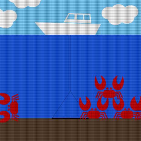 // 網を上下にうまくコントロールして、カニを漁船の中に引き上げると、