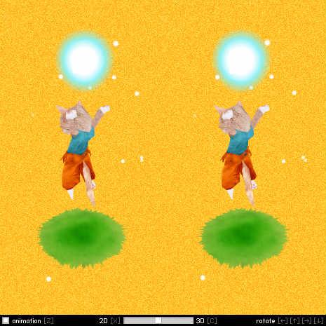 平行法(ボーッと遠くを見る感じ)で立体的に見えます。 3DSliderで立体感の強さを調節できます。 Fullscreen表示にしたほうが見やすくなります。 [z] : animation on/off [x][c] : 3DSlider [←][↑][→][↓] : rotate Stereogram (wall-eyed) http://en.wikipedia.org/wiki/Stereogram