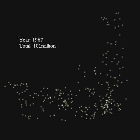 text.htmlText = " Year: " + (count+1920).toString() + "\n Total: " + Math.ceil(totalArray[count]/1000) + "million";