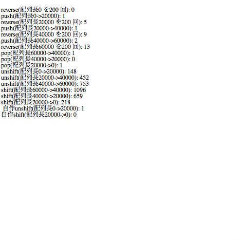 return "unshift(配列長"+ (array.length-COUNT) +"->" + array.length+ "): " + String(getTimer()-time) + "\n";