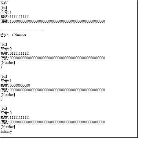 addDebLine("\n-----------------------------------\nNumber → ビット");
