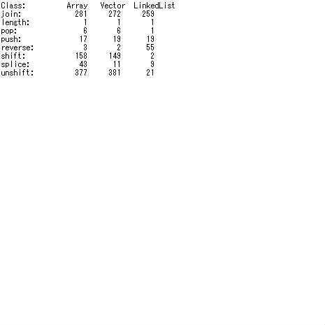 text += "unshift:\t" + form(_arrayResults.unshift) +"\t" + form(_vectorResults.unshift) +"\t" + form(_linkedListResults.unshift) + "\n";