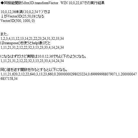 var txt:String="◆同機能関数Mtrx3D.transformVector "+Capabilities.version+"での実行結果\n\n";