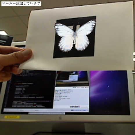 * マーカーを認識すると、「蝶」がマーカーに寄って来て、留まります。