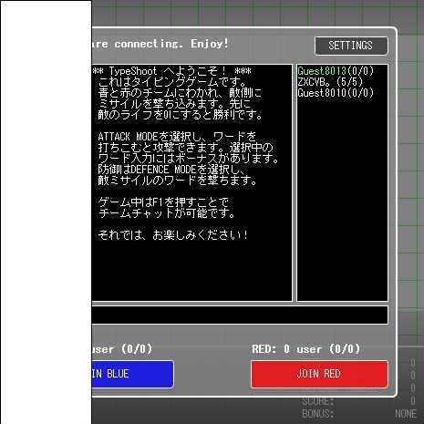 * 入力窓のすぐ上にあるワードを打つとダメージが2倍のミサイルになります。