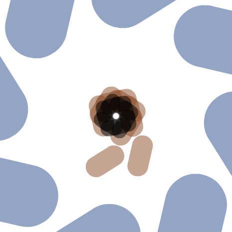 bar_array[i+j*perRing] = MakeUI.newSprite([stage.stageWidth/2,stage.stageHeight/2],[["rotation",i*360/perRing],["scaleX",5/(2+j*2)],["scaleY",5/(2+j*2)]],null,MakeUI.newSprite([50*ran,0],[["rotation",90*ran]],[["beginFill",[color_array[j],0.5]],["drawRoundRect",[0,0,50,100,50]]]));