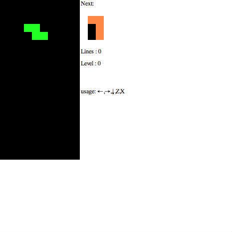 1. 移動を矢印キーに変更 2. 回転をZ,Xキーに変更 3. いきなり落下ではなく、加速するように 4. スピードアップは10ライン消すごとに変更 5. 50ライン消すとレベル0に戻ります。enjoy!!