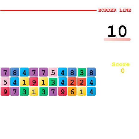 * 足した数の合計と右上の数値がちょうど同じ数になればブロックが消えます。